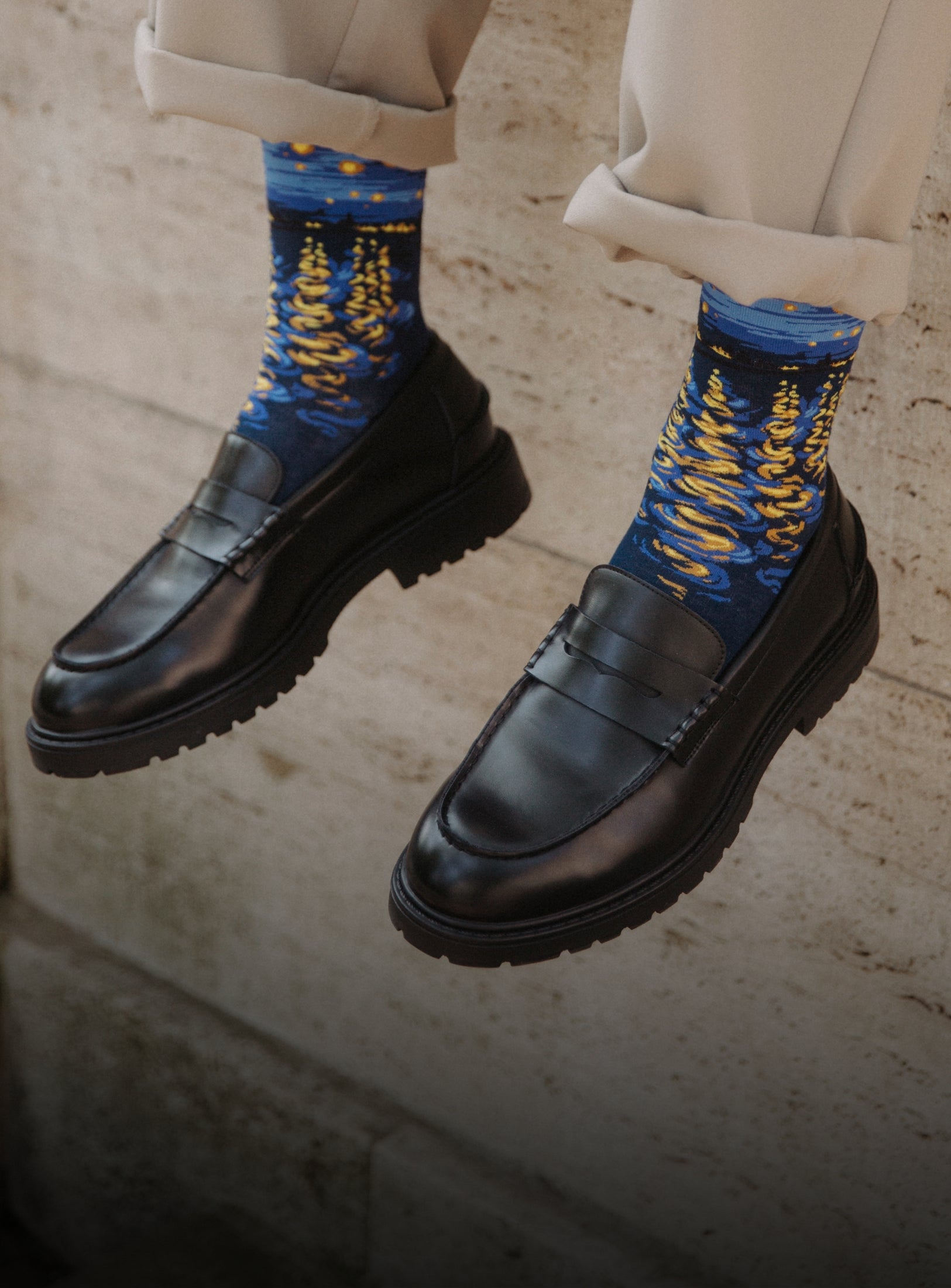 Vos œuvres favorites, toujours à vos côtés. De Van Gogh à Monet, tricotées en doux coton biologique.