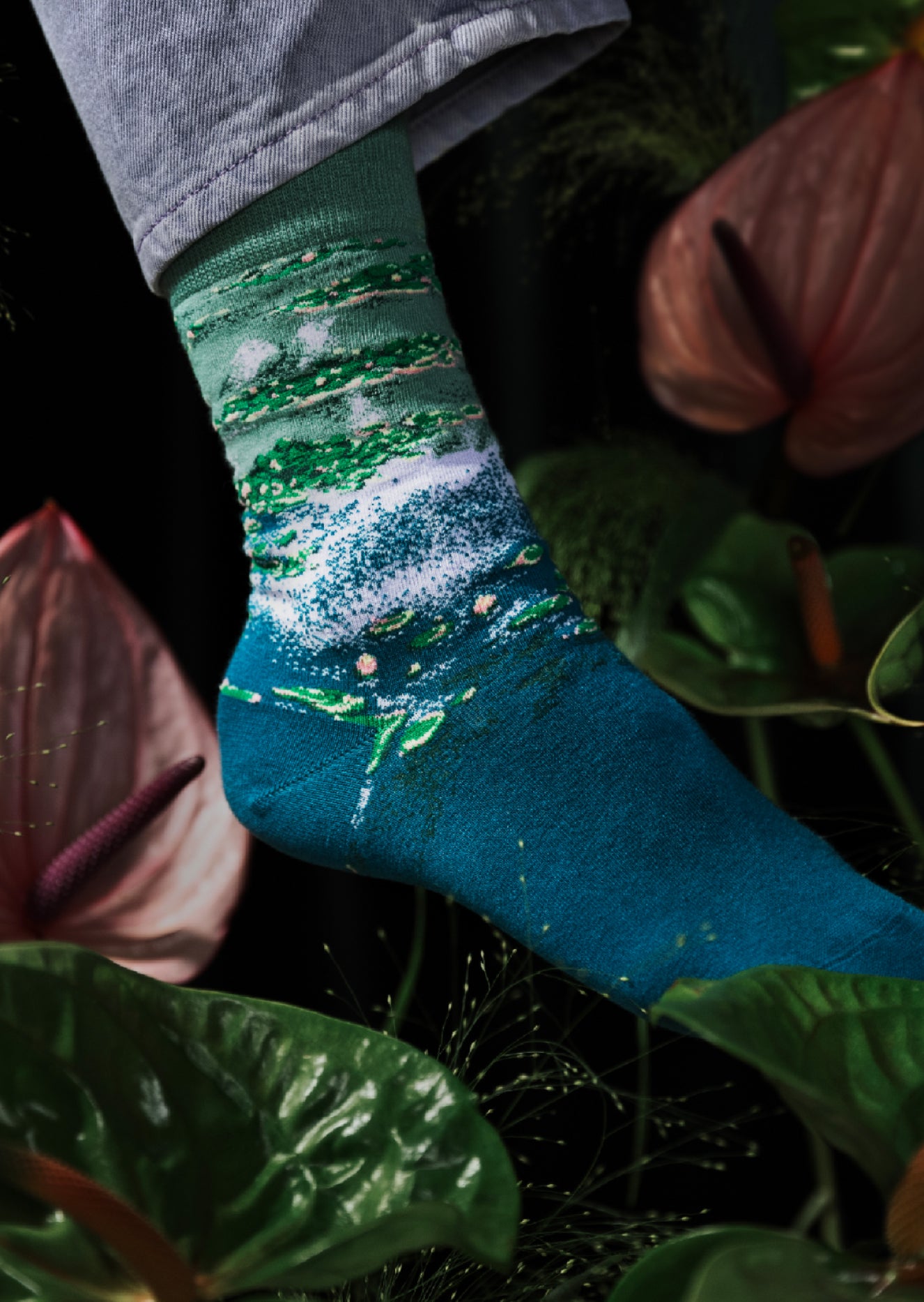Nous sommes convaincus que l'art doit non seulement charmer les yeux, mais aussi procurer une sensation agréable. C'est pourquoi nous utilisons exclusivement du coton biologique et concevons nos chaussettes avec une finition sans couture et des renforts au niveau du talon et de la pointe. Chaque détail est minutieusement pensé pour vous garantir des chaussettes à la fois élégantes, durables et confortables – jour après jour.
