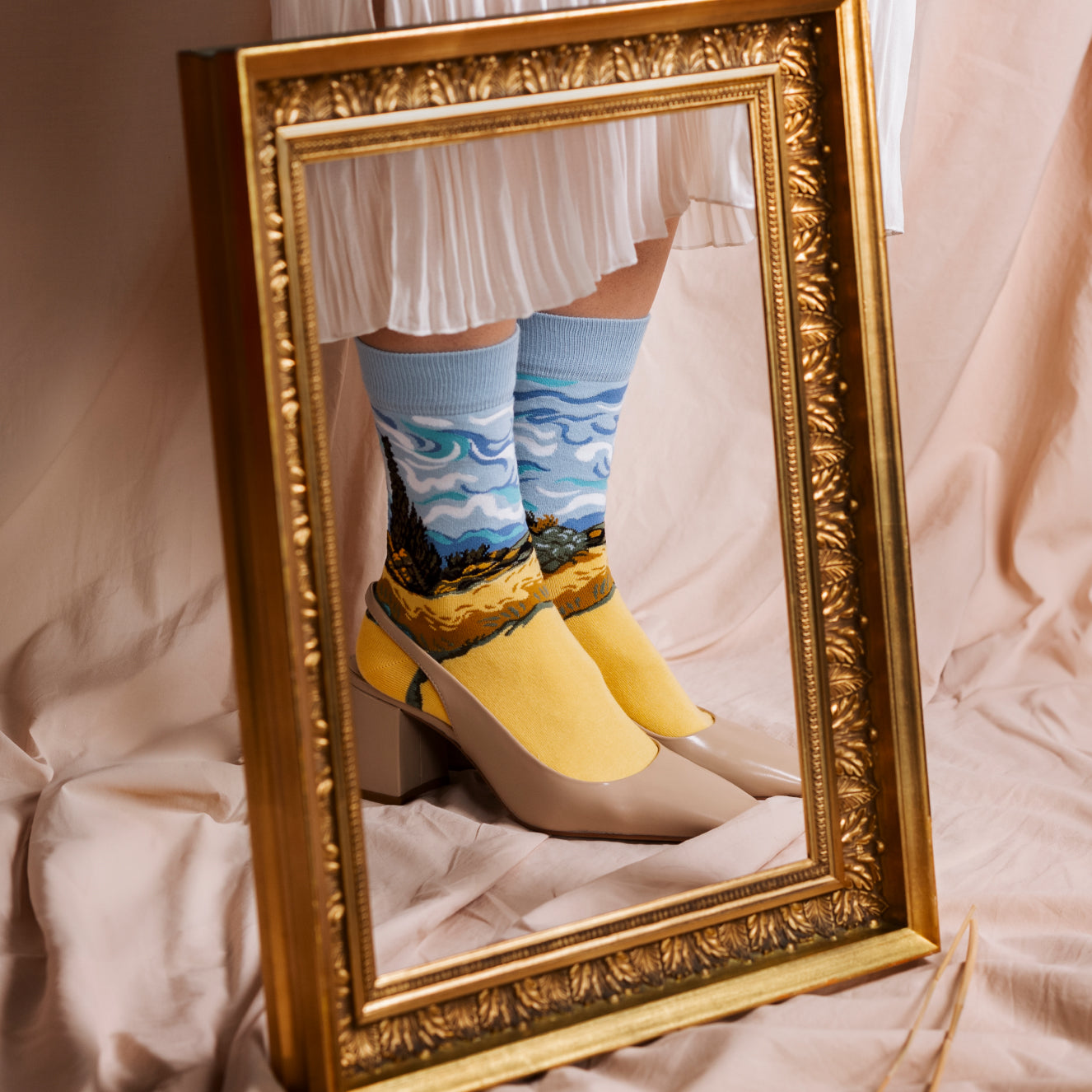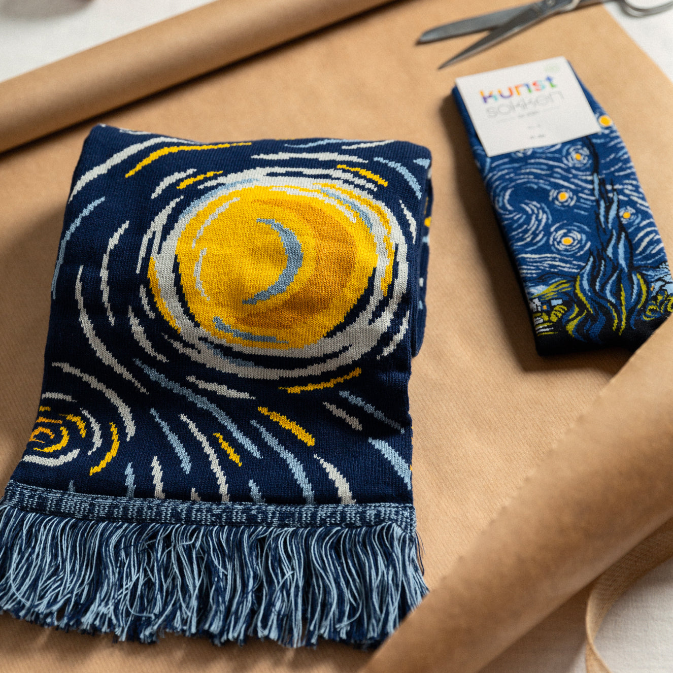 Chez Kunstsokken, nous croyons que l'art ne se limite pas aux musées – il mérite une place dans votre quotidien. Depuis 2020, nous concevons des chaussettes qui donnent vie à des chefs-d'œuvre emblématiques, vous permettant d'affirmer votre style à chaque pas. Avec une attention particulière portée à la durabilité et à la qualité, nous créons des produits non seulement esthétiques, mais aussi infiniment confortables. Car qui a décrété que l'art ne pouvait pas être pratique ?