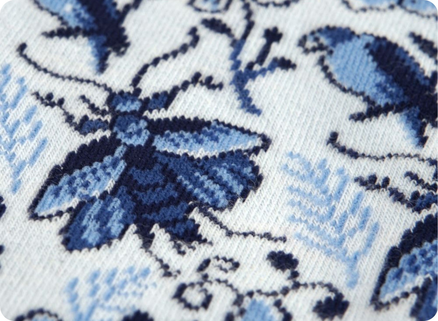 Les œuvres d'art sur nos chaussettes ne sont pas imprimées mais réellement tricotées dans le tissu – ce qui surprend souvent nos clients. Grâce à cette technique, les couleurs conservent leur éclat et leur vivacité lavage après lavage. Même après des dizaines de portées, vos chaussettes resteront aussi vibrantes que le jour de leur achat. Vous pourrez ainsi profiter plus longtemps de l'art à vos pieds !