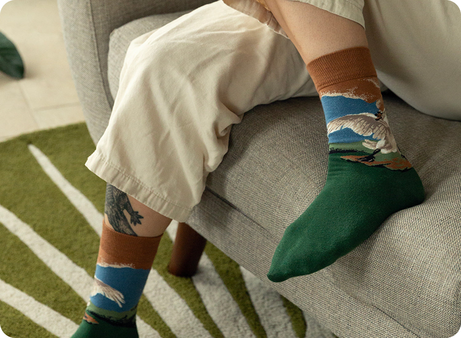 Chaque paire de chaussettes épouse parfaitement la forme de votre pied pour un confort exceptionnel tout au long de la journée. Pendant les longues journées, vous apprécierez la différence notable avec des chaussettes ordinaires, tout en affichant une touche artistique unique.