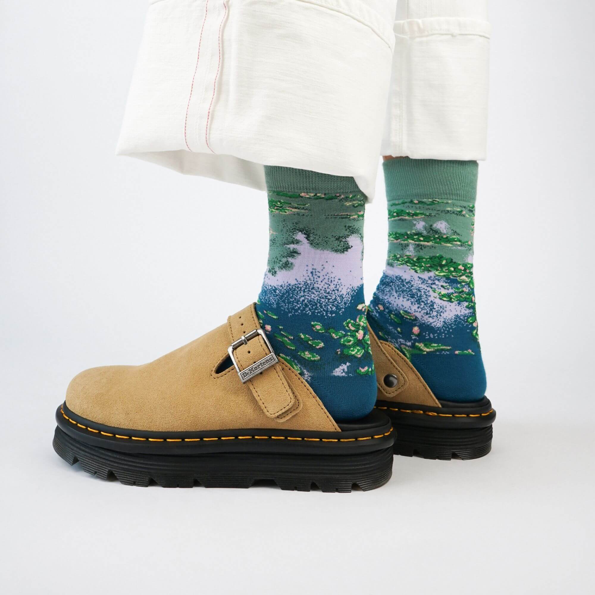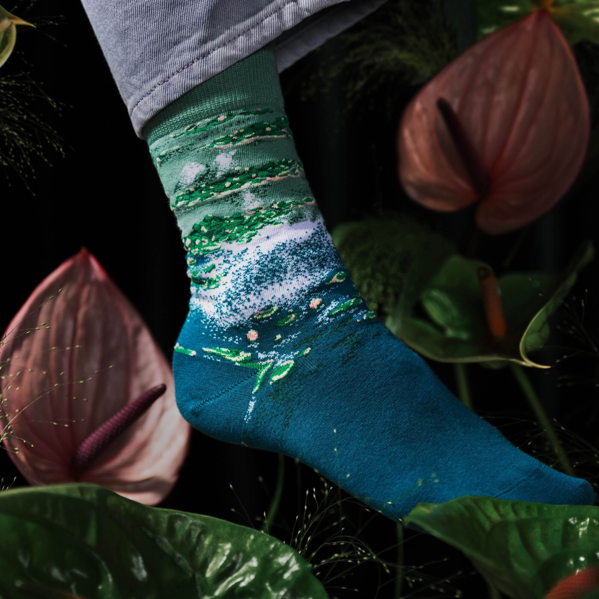 Les œuvres d'art sur nos chaussettes ne sont pas imprimées mais réellement tricotées dans le tissu – ce qui surprend souvent nos clients. Grâce à cette technique, les couleurs conservent leur éclat et leur vivacité lavage après lavage. Même après des dizaines de portées, vos chaussettes resteront aussi vibrantes que le jour de leur achat. Vous pourrez ainsi profiter plus longtemps de l'art à vos pieds !